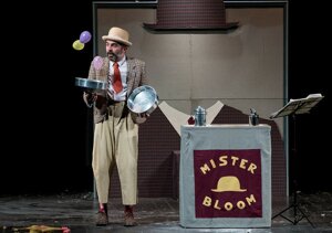 Mr Bloom, performance di mimo e clownerie, senza parole, dovuta al bravissimo Antonio Brugnano... i suoi sogni per mezzo della forza espressiva dell'attore diventano realtà e si materializzano sulla scena attraverso i soli gesti ed un accompagnamento musicale sempre consono ed inventivo. Tra Tati', Chaplin e Keaton uno spettacolo molto particolare, poetico, divertente e ben costruito.
